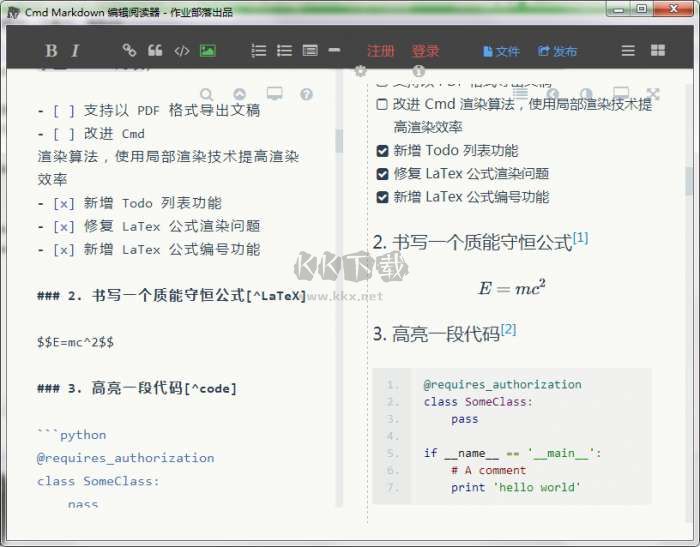 Cmd Markdown編輯器是一款功能強大的文本編輯軟件,用戶們可以在這里便捷的進(jìn)行文本的編輯使用在,支持的代碼種類眾多還有豐富的編輯功能提供給用戶們讓你可以輕松的進(jìn)行公式等的編輯,對于開發(fā)者們來說這也是一個便捷的可視化的編輯工具,你可以在這里高效的進(jìn)行編輯,感興趣的用戶快來KK下載體驗吧~