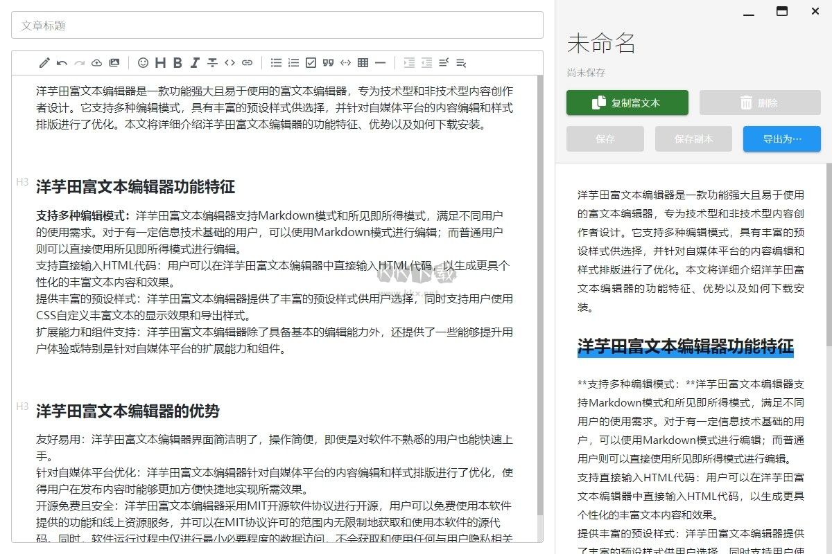 洋芋田富文本編輯器亮點(diǎn)