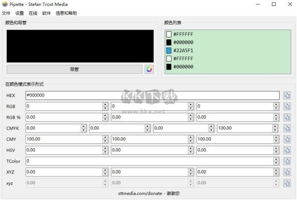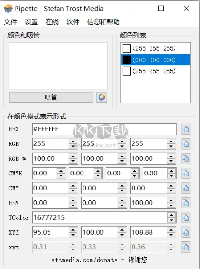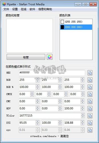 3、取色成功后,羅列出RGB、CMY、CMYK、HSV、TColor和XYZ0數(shù)值,方便用戶調(diào)用;