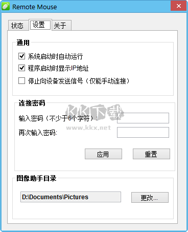 點(diǎn)擊電腦任務(wù)欄中的Remote Mouse (Mac在桌面右上角,PC在桌面右下角),然后在彈出菜單中選擇“設(shè)置”,將“連接密碼”處的輸入框留空,點(diǎn)擊“應(yīng)用”。