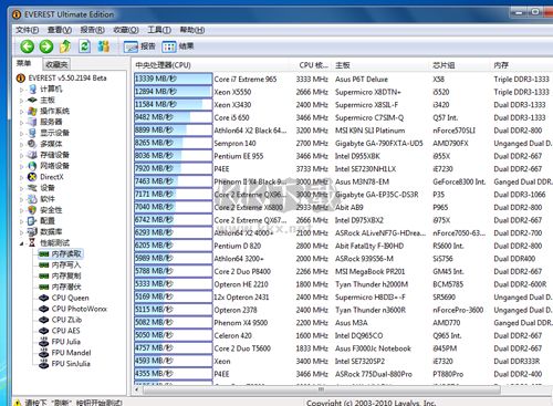 說一下用EVEREST Ultimate Edition檢測一下我們的計算機(jī)性能到底怎么樣,點擊菜單最下面的“性能測試”里面有內(nèi)存、CPU、FPU的相關(guān)測試。