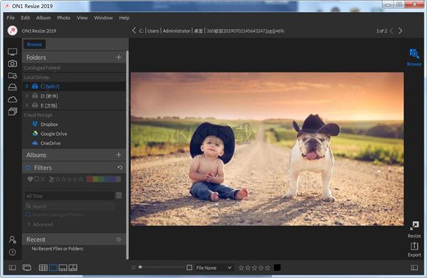 7、啟動(dòng)桌面快捷方式,打開之后即為ON1 Resize 2019,親測(cè)沒有限制,請(qǐng)放心使用!