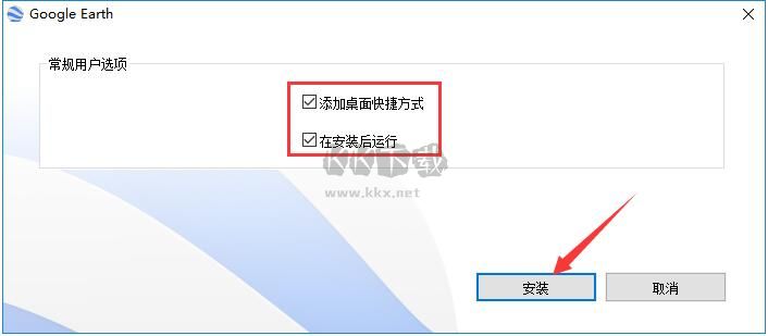 2、在安裝選項(xiàng)中可根據(jù)習(xí)慣需要選擇是否勾選,再點(diǎn)擊安裝。