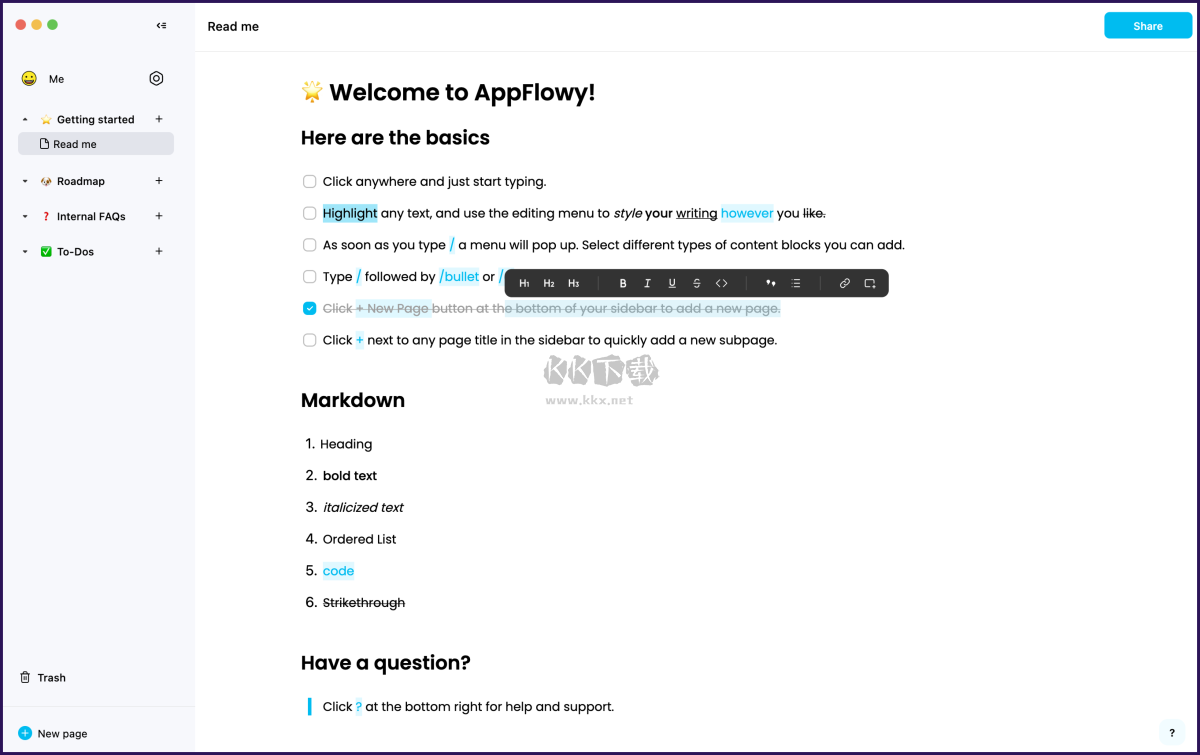 更快,更穩(wěn)定,支持脫機(jī)模式。它也能更好地與不同的設(shè)備整合。此外,AppFlowy使用戶可以獲得網(wǎng)絡(luò)上沒(méi)有的功能和可能性。