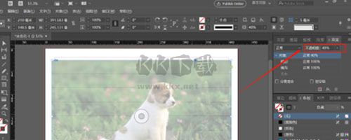5、選中這個狗狗圖片,調(diào)整不透明度為40%(如圖所示)。