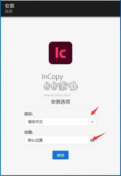 3、為Ic2024選擇安裝位置,選擇語言,點(diǎn)擊繼續(xù):