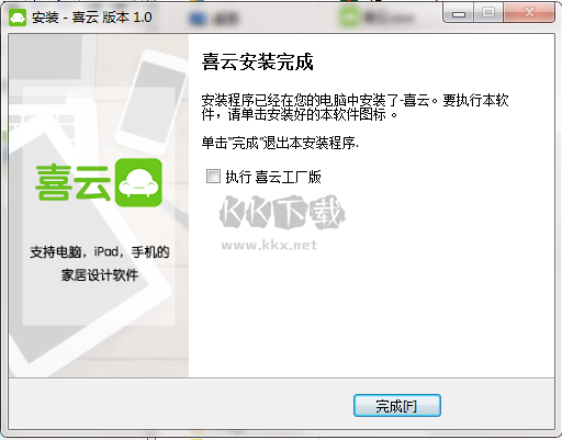5、喜云安裝完畢,點(diǎn)擊完成就可以自動(dòng)打開軟件