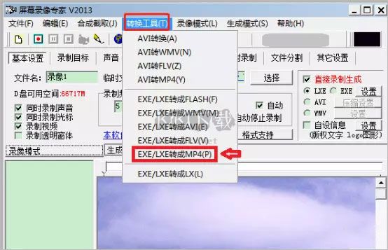 8.后期轉(zhuǎn)換功能,支持LXE/EXE/AVI轉(zhuǎn)成其它各種格式(MP4/FLV/GIF/WMV)