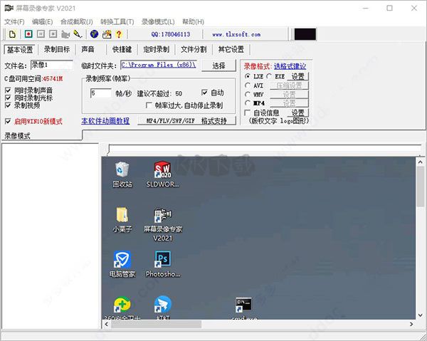 3.獨(dú)創(chuàng)LXE/EXE格式支持原畫無損錄制(制作軟件操作教程時(shí)),支持超高分辨率,文件小