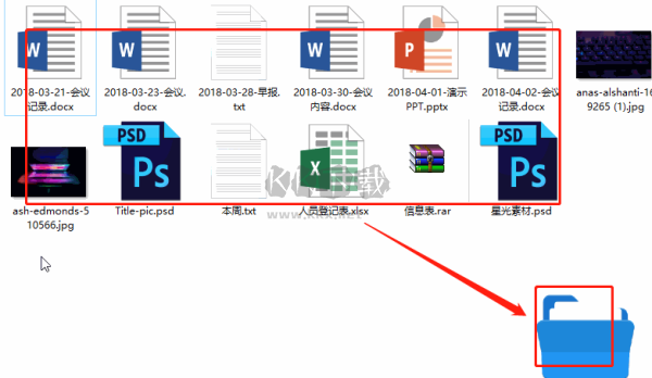 4.選中所有需要分類(lèi)管理的文件,并將它們拖入到懸浮圖標(biāo)