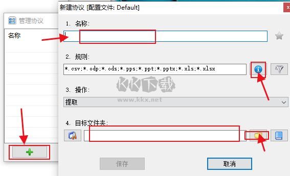 3.點(diǎn)擊左下角綠色加號(hào)添加協(xié)議,名稱(chēng)隨意,規(guī)則可以分類(lèi)中選擇也可以自己些(注意格式)設(shè)為正則表達(dá)式,操作根據(jù)需求,這里設(shè)置為提取,保存即可