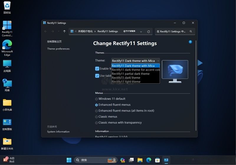 Rectify 11主題個(gè)性化工具功能
