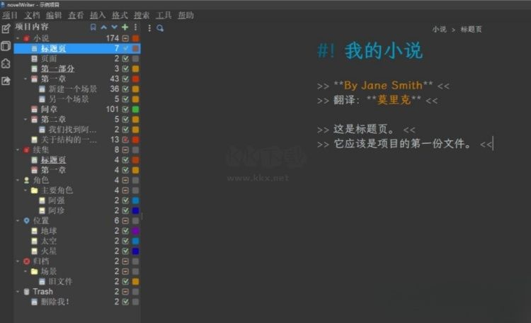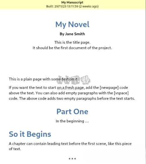 novelWriter采用最基本的markdown語法。每一個小說文檔都基于標(biāo)題進(jìn)行構(gòu)建: