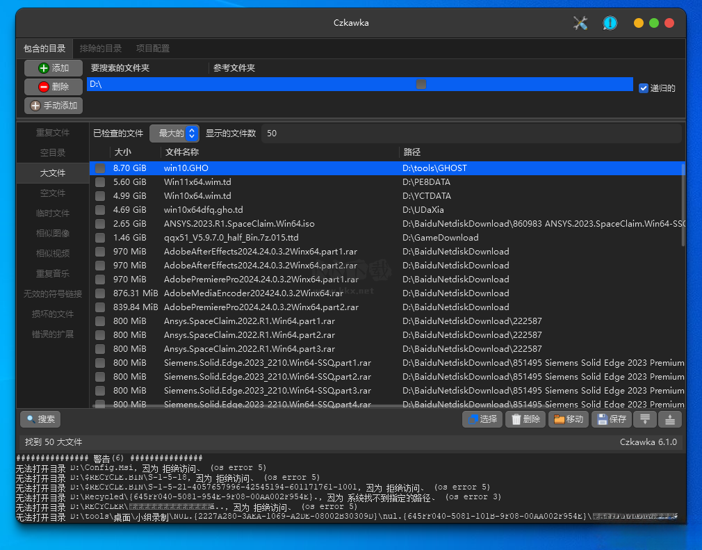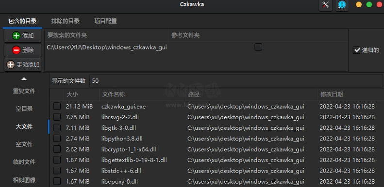 1、Czkawka提供中文界面,可以更好選擇適合的功能清理垃圾