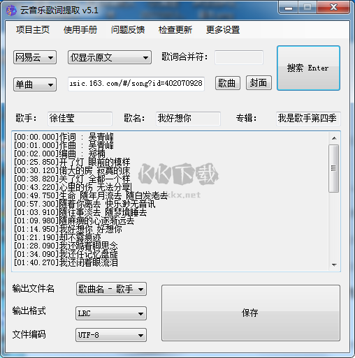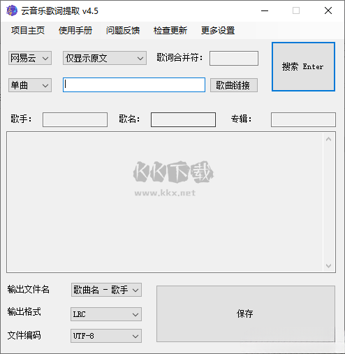 163MusicLyrics歌詞下載工具是一款專門為用戶提供的云音樂(lè)歌詞提取軟件,用戶們可以在這里便捷的找到一首歌的完整的歌詞,用戶們可以在這里快速的找到各種對(duì)于的歌詞,支持用戶們?cè)谶@里便捷的從QQ音樂(lè)、網(wǎng)易云音樂(lè)、酷我音樂(lè)等等平臺(tái)上提取歌詞下來(lái)使用,一鍵批量的進(jìn)行操作使用,滿足用戶們的對(duì)歌詞的需求使用,感興趣的用戶快來(lái)KK下載體驗(yàn)吧~