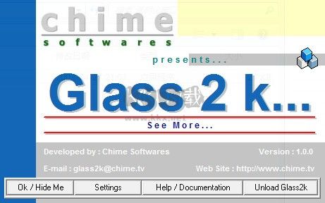 運(yùn)行軟件后,點(diǎn)擊 OK/Hide Me 就縮小到托盤(pán)了,Unload Glass2k是退出軟件。