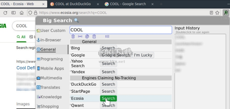 可將任意搜索引擎、查詢網(wǎng)站集于一處操作(連續(xù))。任何支持GET/POST的網(wǎng)站