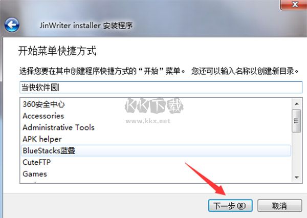 6、然后就可以選擇開始菜單快捷方式的創(chuàng)建,可自定義名稱或者創(chuàng)建新目錄;