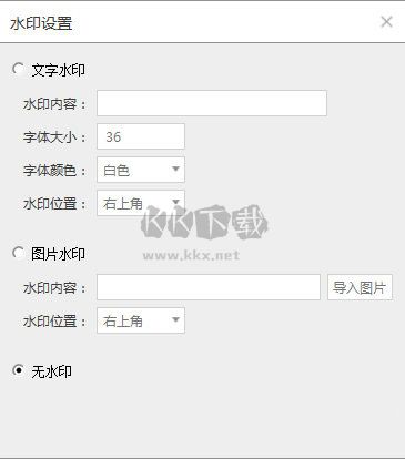 2、文字、圖片水印:可添加多個(gè)水印,水印位置可視化調(diào)節(jié)。