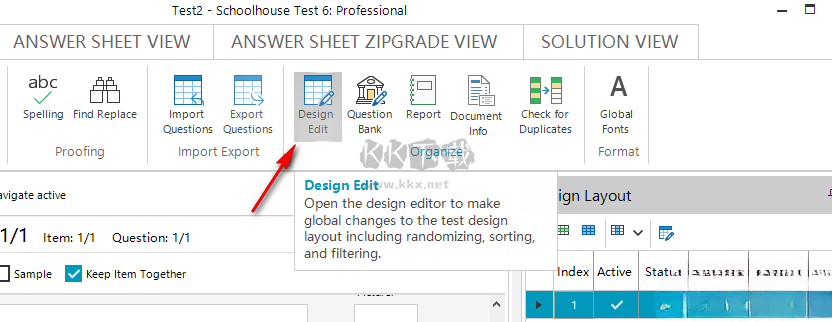 打開設(shè)計(jì)編輯器,對測試設(shè)計(jì)布局進(jìn)行全局更改,包括隨機(jī)化、排序和篩選
