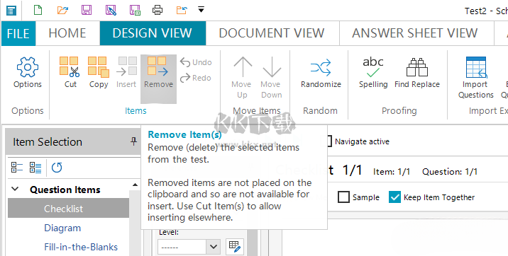 實(shí)際測試問題和元素的隨機(jī)化可以通過設(shè)計(jì)編輯器中的各種選項(xiàng)來完成