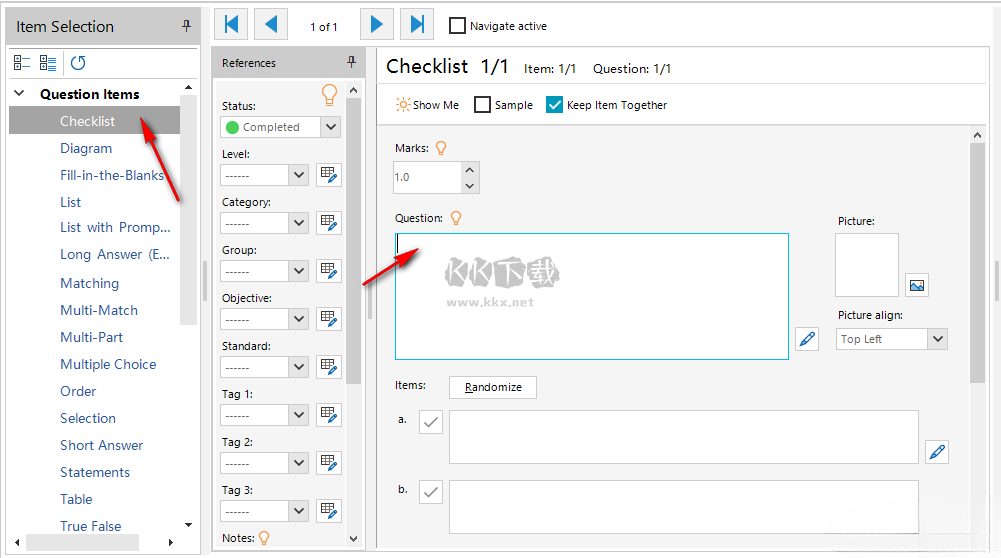 8、支持Checklist、Diagram、Fill-in-the-Blanks、List等題目內(nèi)容