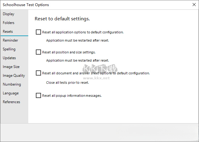 將所有文檔和答題紙選項(xiàng)重置為默認(rèn)配置。