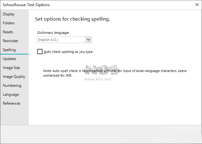 注意:自動(dòng)拼寫檢查與輸入亞洲語言字符的IME不兼容。不選中IME。