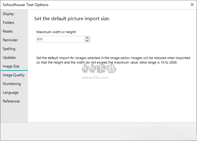 為在圖像編輯器中選擇的圖像設(shè)置默認(rèn)導(dǎo)入。導(dǎo)入時(shí),圖像將縮小,以使高度和寬度不超過最大值。有效范圍為10到2000。