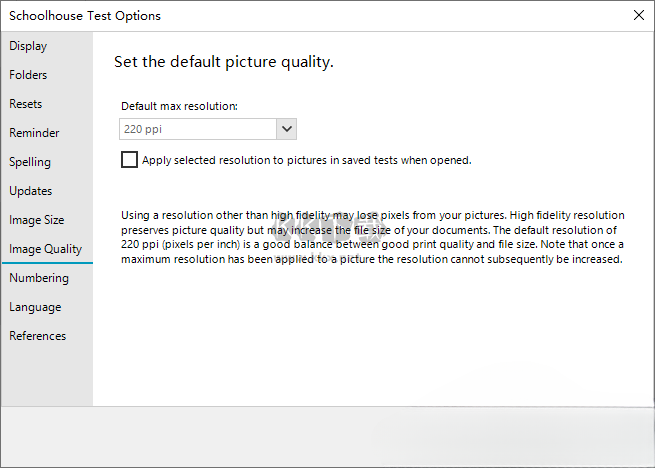 打開時(shí)將選定的分辨率應(yīng)用于保存的測試中的圖片。