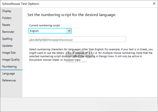 為英語以外的語言選擇編號字符。例如,如果您的測試是用希臘語進(jìn)行的,您可能希望使用字母a By 6而不是b cd進(jìn)行多選編號。請注意,所選的編號腳本不會(huì)影響設(shè)計(jì)視圖中的字母。它將僅在文檔中處于活動(dòng)狀態(tài)。答案表或解決方案視圖