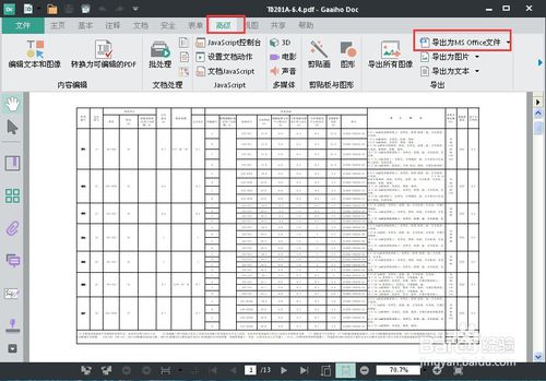 單擊工具欄中的“高級”按鈕,找到“導(dǎo)出為MS Office文件”選項(xiàng)。