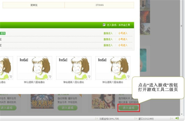 2、找到所需的游戲工具后,點擊“進入游戲”按鈕,打開游戲工具二級頁面。