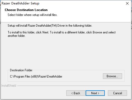 3、選擇雷蛇鼠標(biāo)驅(qū)動安裝位置,您可以點擊【browse】在打開的窗口中自行選擇軟件安裝位置,選擇完成點擊【next】。