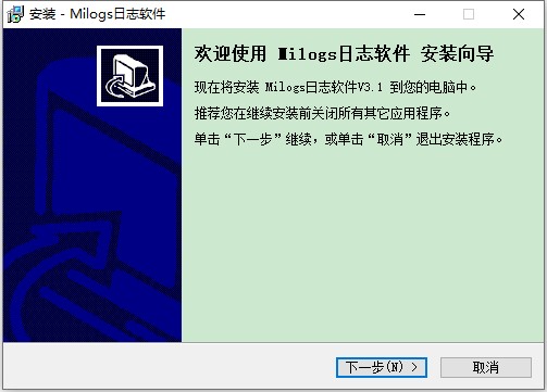 1、等待Milogs管理軟件下載完成,然后解壓縮并雙擊exe文件進入安裝向?qū)Вc擊下一步