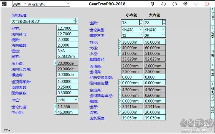 GearTrax PRO 2018中文版是一款專業(yè)的齒輪計(jì)算設(shè)計(jì)軟件,GearTrax內(nèi)置了SolidWorks、invertor、soliedge等三種組件,大家可以根據(jù)自己的需要選擇,可以設(shè)計(jì)的齒輪類型包括直齒輪,斜齒輪,錐齒輪,鏈輪,漸開線齒形,帶齒輪,蝸輪蝸桿,花鍵,V帶輪等,運(yùn)行后輸入對(duì)應(yīng)的參數(shù)就可以計(jì)算出齒輪大小、齒高、大直徑、小直徑等信息。