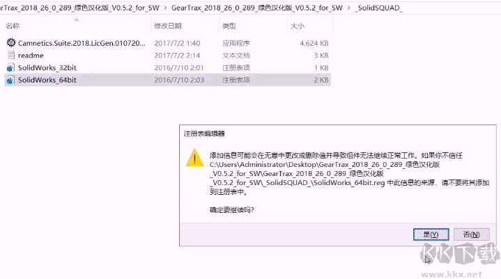2、找到_SolidSQUAD_ 文件夾下的SolidWorks_64bit.reg文件,雙擊導(dǎo)入注冊(cè)表;