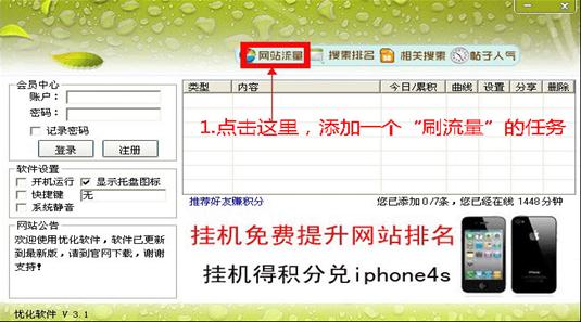 1.點(diǎn)擊網(wǎng)站流量,添加一個(gè)刷流量 的任務(wù)