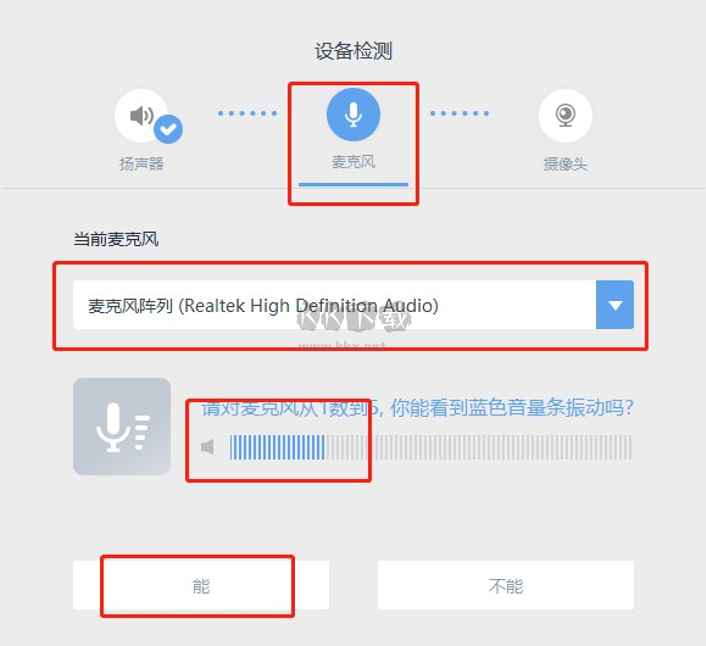當您點擊進入教室后,檢測完揚聲器,接下來是麥克風(fēng)檢測。需要您對著麥克風(fēng)講話觀察音量條是否波動,如果不波動,則上課時對方可能聽不見您的聲音。此時請參考以下步驟解決~