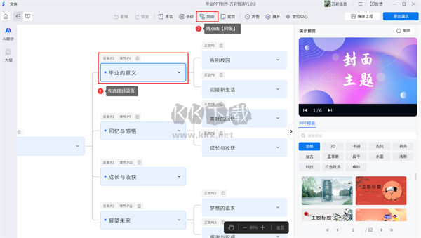 除了常規(guī)的【文本模式PPT】呈現(xiàn)形式,還支持用思維導(dǎo)圖的形式來呈現(xiàn)智能生成的PPT內(nèi)容,快速將PPT關(guān)鍵點和想法關(guān)聯(lián)起來,速成清晰的PPT思維導(dǎo)圖,比你自己做的還好,打工人真的太需要了!