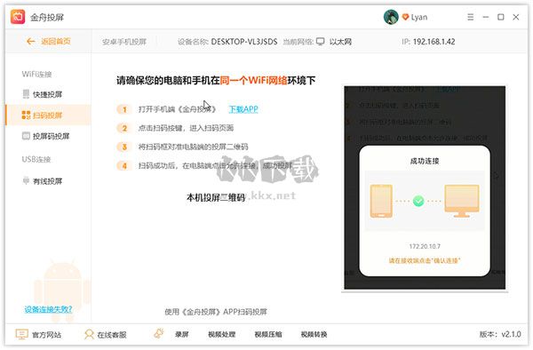 軟件支持掃碼投屏,這里掃碼指的是手機(jī)端的投屏APP進(jìn)行掃碼,切勿用其他APP掃碼,掃碼成功后即可投屏成功。