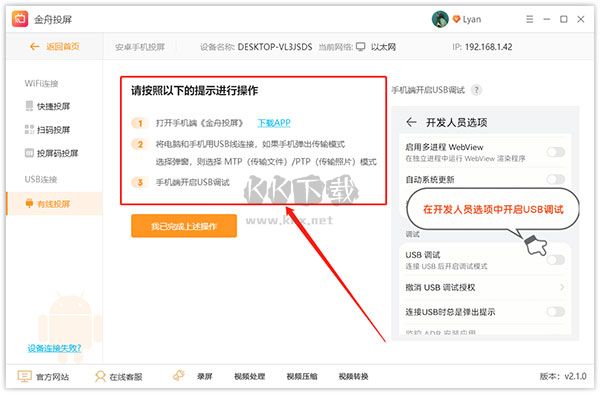 USB連接投屏,無(wú)需擔(dān)心網(wǎng)絡(luò)問(wèn)題,隨時(shí)隨地,即連即投。