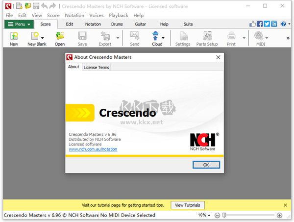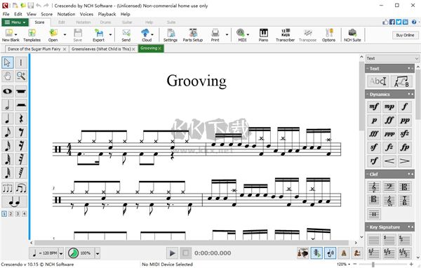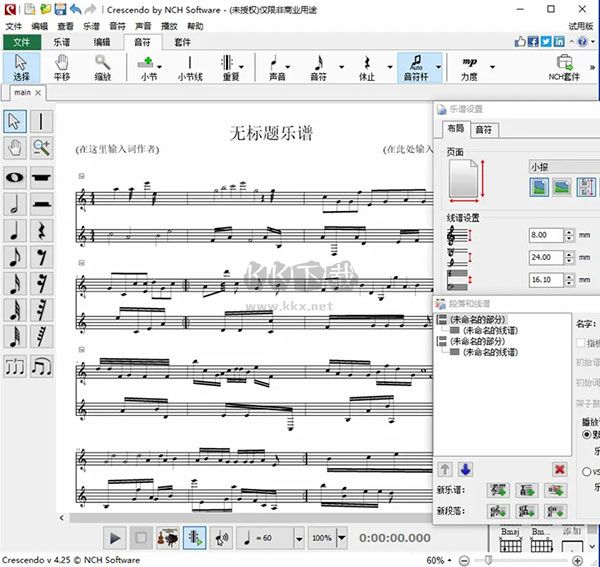 crescendo(樂譜編輯器)是一款功能非常強(qiáng)大的創(chuàng)作編曲軟件,通過crescendo你可以創(chuàng)建、保存和打印音樂作品和布局,快速設(shè)置頁(yè)面布局、譜號(hào)、拍號(hào)、調(diào)號(hào)、小節(jié)、變音記號(hào)、延音線,圓滑線等多種記譜符號(hào)。如果你是音樂創(chuàng)作者,快來(lái)crescendo當(dāng)中打印您的樂譜或以PDF、MIDI、MP3、WAV、TGA、JPG、PNG等格式發(fā)布,或者輕松重新格式化為其他頁(yè)面尺寸!歡迎到本站下載體驗(yàn)。