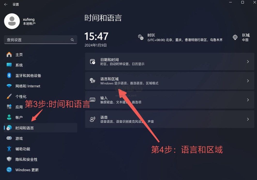 第3步:點(diǎn)擊“時(shí)間和語(yǔ)言”