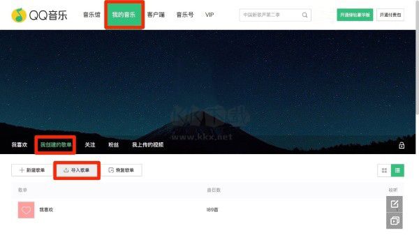 2、第二步點(diǎn)擊我的音樂(lè)-我創(chuàng)建的歌單-導(dǎo)入歌單。