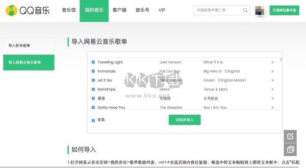 6、第六步,點(diǎn)擊識(shí)別并導(dǎo)入,即可將網(wǎng)易或者蝦米的歌單導(dǎo)入到QQ音樂(lè)。