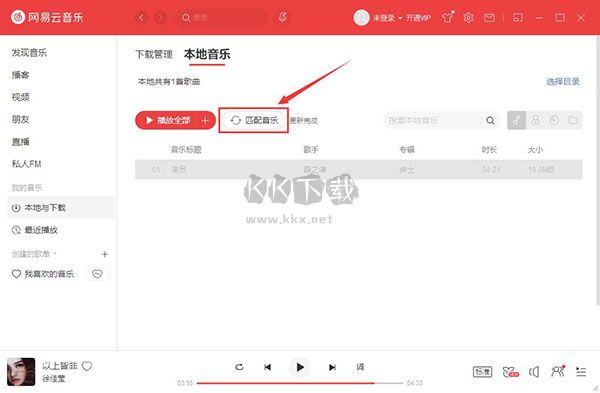 5、這時(shí)候我們就可以看到軟件已將本地音樂(lè)添加進(jìn)播放列表了,但是目前音樂(lè)還未準(zhǔn)備就緒,我們還需要再點(diǎn)擊上方的匹配音樂(lè)按鈕。