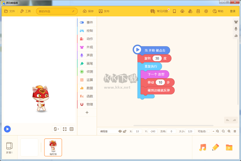 2、源碼編輯器最新版與編程貓一樣內置了圖形化編程,引起學生學習興趣;