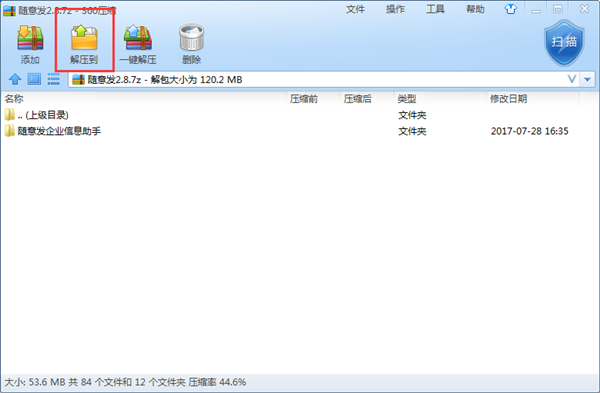 雙擊打開隨意發(fā)壓縮包文件,直接點(diǎn)擊解壓到:
