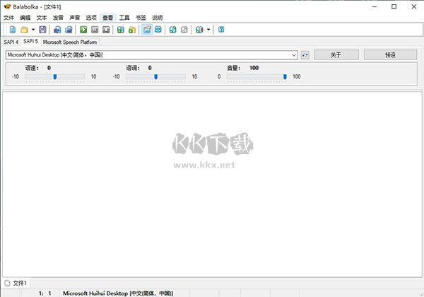 Balabolka使用微軟的語(yǔ)音API(SAPI)的各種版本,它可以改變語(yǔ)音的參數(shù),包括語(yǔ)度和語(yǔ)調(diào)。文本語(yǔ)音朗讀工具,支持屏幕上的文字可以保存為WAV或MP3文件。